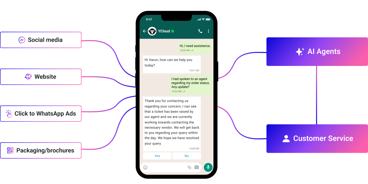 With YCloud Inbox, your entire support team can manage customer conversations through a single WhatsApp number.